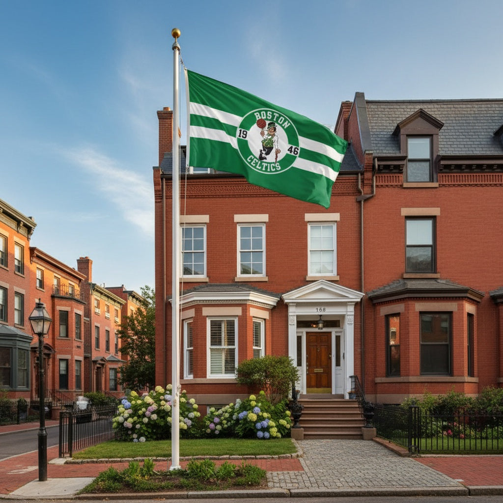 Crafted from durable polyester with tight, detailed stitching, this double-sided Celtics flag is built to last. It includes a reinforced fly end, a sturdy heading, and two strong grommets for secure display. Perfect for outdoor use, this heavy-duty Boston Celtics flag is designed to withstand the elements, though its robust construction requires winds of 15 mph or more to fly fully. Get your official Boston Celtics fan flag today and let your team colors fly!