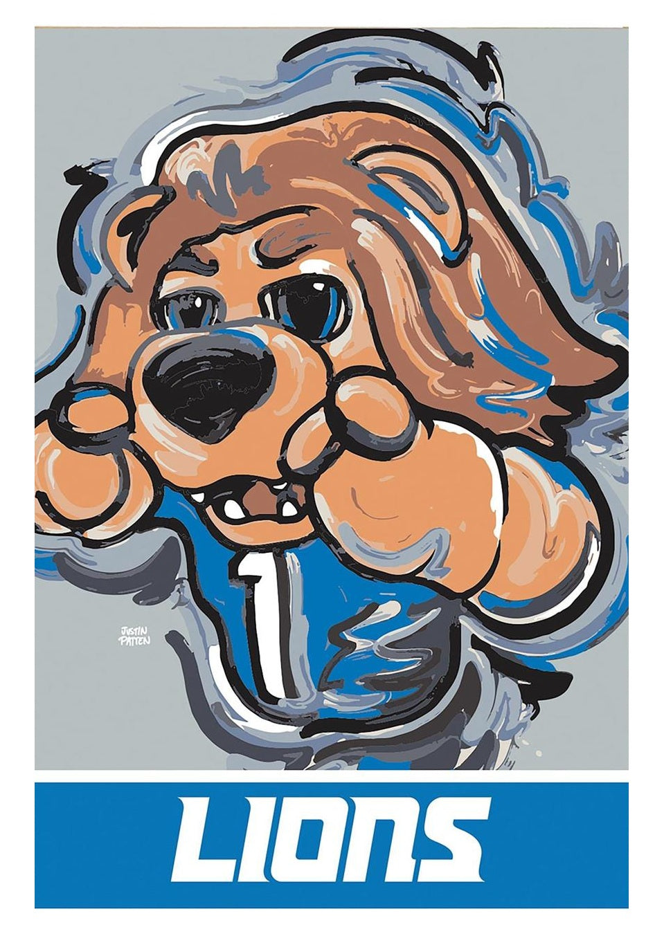 This Detroit Lions suede house flag comes from the inspiring work of painter Justin Patten. The design features Roary the Lion, a ferocious lion with human like features representing the official team mascot. With its vibrant Detroit Lions colors, this house flag is the perfect way to show team spirit during football season and beyond. This Patten piece is truly one of a kind and makes a great gift for a fan of the Detroit Lions. This Suede Reflections flag is made of medium-weight, polyester suede that provides a soft and durable texture. Artwork is heat transferred onto the sun-blocking material so that it is easily viewed from both sides. The weatherproof poly-suede will not fray or fade with continued outdoor use. The brilliant colors make any Suede Reflections flag the perfect addition to your home. This flag features a sleeve for use with any standard flagpole or stand, sold separately.