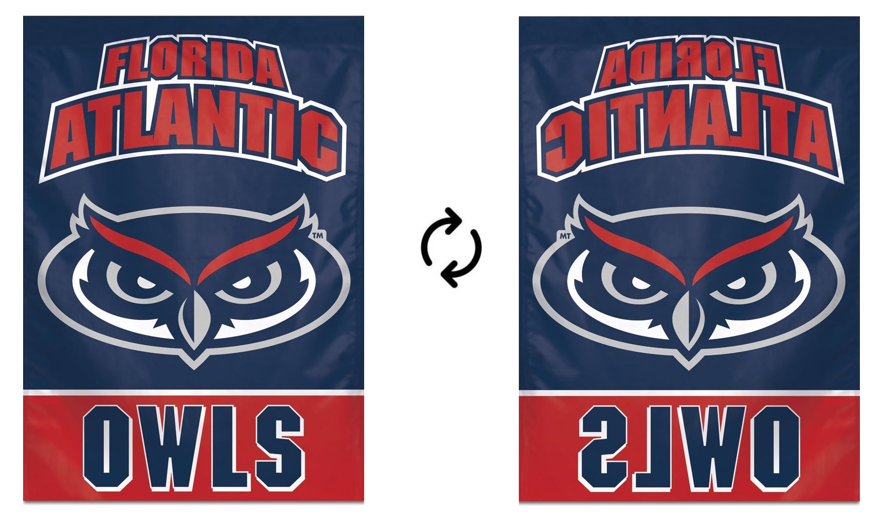 Officially licensed Florida Atlantic Owls banner. The design and wording on this FAU banner is visible on both sides with the opposite side being backwards. Single sided with the colors being slightly lighter/faded on the back side - picture illustrates how the design will appear from the front and back side. Made from polyester fabric with pole sleeve and tab. Fly from your house flagpole (sold separately) or display as wall decoration. Printed in the USA on imported fabric.