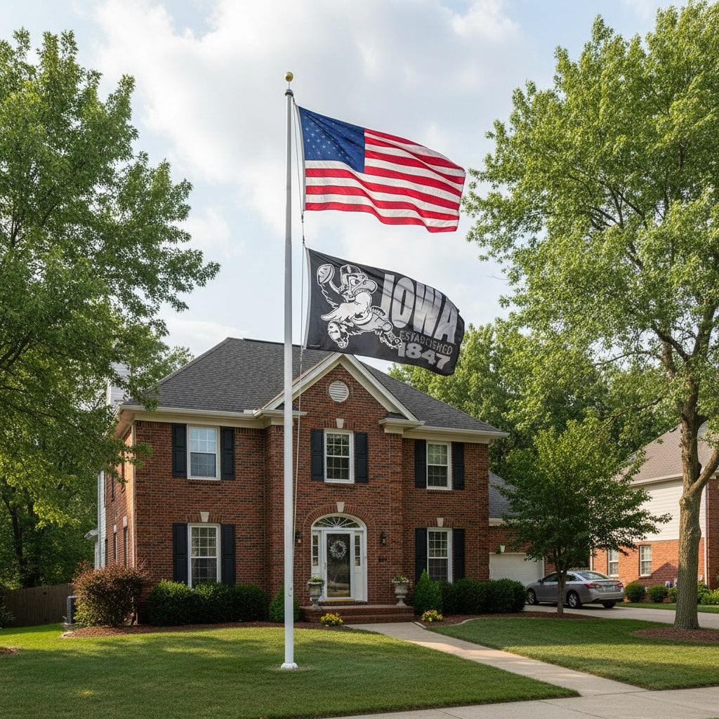 Officially licensed University of Iowa 3 foot by 5 foot flag.The Hawkeye black/white logo and wording reads correctly on one side only with the opposite side being backwards. Single sided school approved flag with the colors being lighter on the back side. Pictures show the front and back design on this Iowa Hawkeyes football flag.Stand out in the Kinnick Stadium parking lot by flying this flag from your telescopic flagpole or fly from your traditional or house flagpole (sold separately). Made out of premium polyester with heading, two grommets on the left side and a reinforced fly end making this an excellent outdoor or indoor flag.