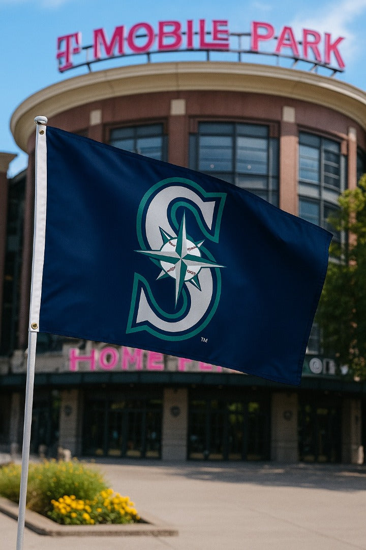 Show your Mariners pride at home, at the lake, or on game day with this officially licensed Seattle Mariners 3x5 Flag. Featuring the classic Mariners compass logo on a deep navy background, this flag is a must-have for any baseball fan.