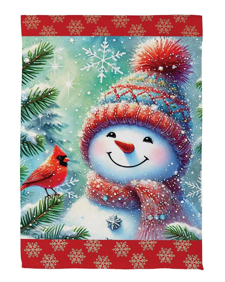 Add a touch of heartwarming winter charm to your outdoor décor with this Double-Sided Snowman with Cardinal Friend Garden Flag. Featuring a cheerful snowman bundled up in a cozy knit hat and scarf alongside a bright red cardinal, this design captures the magic, warmth, and joy of the winter season.