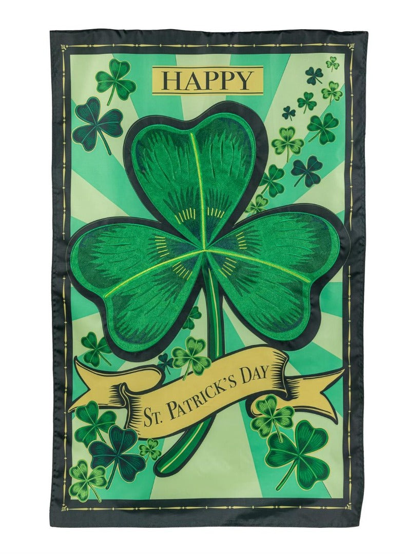 Celebrate Irish pride in bold, classic style with this Double-Sided St. Patrick’s Day Shamrock Applique House Flag. Featuring a striking oversized shamrock at the center, this festive flag is beautifully layered with rich green tones, gold accents, and detailed stitching that creates depth and texture you can see and feel.